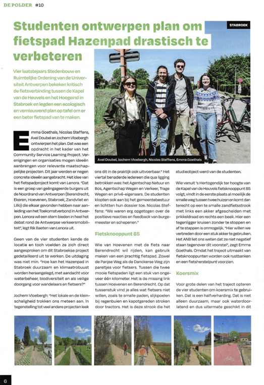 Van februari tot mei 2025 onderzoeken 4 studenten van CSL de problematiek. Zij gaan verschillende malen ter plaatse, tellen op verschillende momenten het aantal fietsers en spreken met vertegenwoordiging van Agentschap voor Natuur en Bos (ANB) en gemeentebestuur Stabroek.